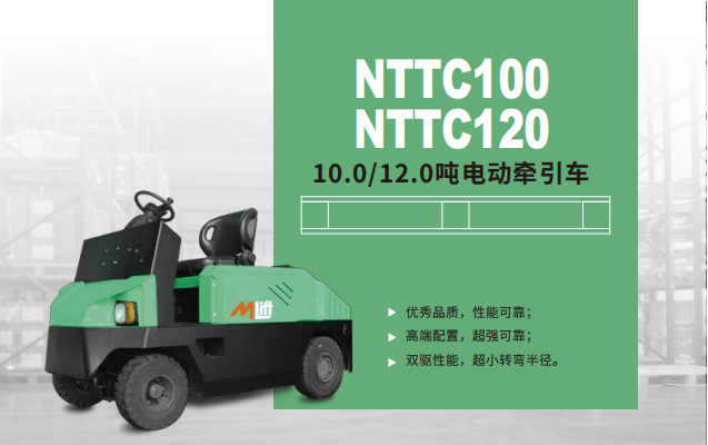 三菱叉車 NTTC100 10噸電動牽引車高性能,高可靠雙交流驅動系統,大扭矩,爬坡能力強大牽引力,動力強勁,保證適合各種路面不平的工況質量可靠的美國AMP防水接插件及電器件,所有電線、電纜均有可靠的?保護和固定,大大降低了電器故障前橋軟連接,過障具有良...