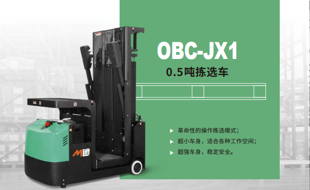 三菱叉車 OBC-JX1 0.5噸揀選車高性能,高可靠更安全∶交流驅動系統,提供強勁動力控制更精確,運行更平穩高強度立式變速箱,超長工作壽命低噪低故障液壓站,經過多層檢測測試的油缸及管路,保證了液壓系統高可靠質量可靠的美國AMP防水接插件及電器件,所有電線...