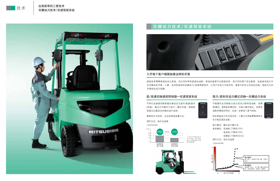 三菱叉車 GRENDIA FD叉車 FN叉車 雙模動力技術/雙速駕駛系統