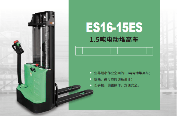 業界超小作業空間的1.5噸電動堆高車;低耗、高可靠的創新設計;長手柄、偏置操作,方便安全。高性能,高可靠∶交流驅動系統,提供強動動力;控制更精確,運行更平穩;高強度立式變速箱,超長工作壽命;低噪低故液壓站,經過多層檢測測試的油缸及管路,保證了液壓系...